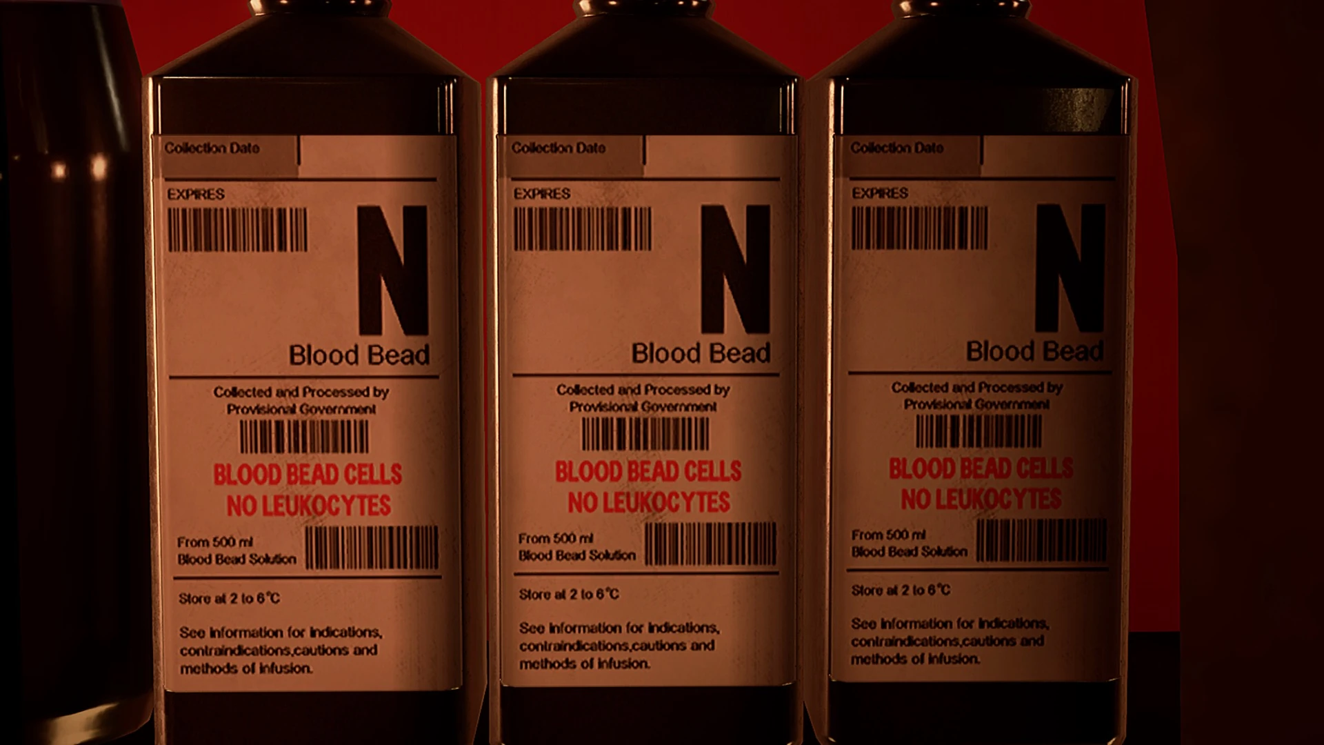 Excess Blood Bead and those harvested by the levies of Silva’s Provisional Government can be stored for future uses after being processed. It can be assumed that they can be placed into a base container or into existing beverages like the ones lined up along the walls of the hideout’s bar.