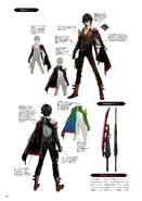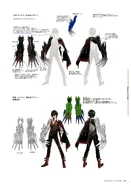 When he is in the Headquarters, he wears a white dress shirt with rolled-up sleeves, with the collar unbuttoned; over this, he wears a vest that gradually fades from red to black (top to bottom). He also uses black leather jeans held by a sideways belt with studs. He finishes this look with red boots held by two belts.